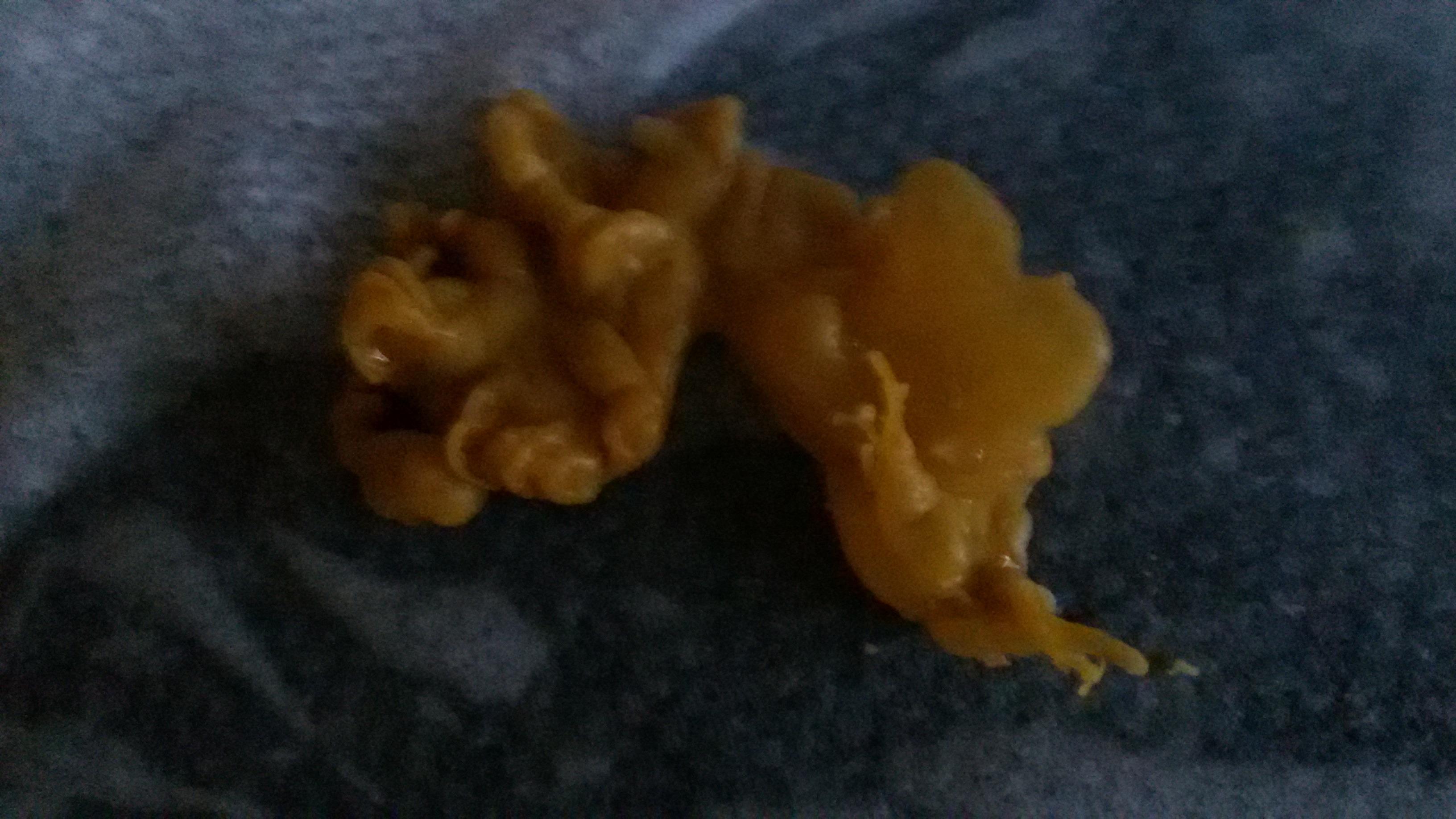Настоящий воск приобрести пока не удалось. Сегодня делала отливку на воск пяти больших церковных свечей. Пытаюсь себя диагностировать. На что это может быть похоже?Outlander писал(а):Moor-moory писал(а):Я пытаюсь отливать сглаз и накопленный негатив. Брала воск пяти свечей. Надо больше?