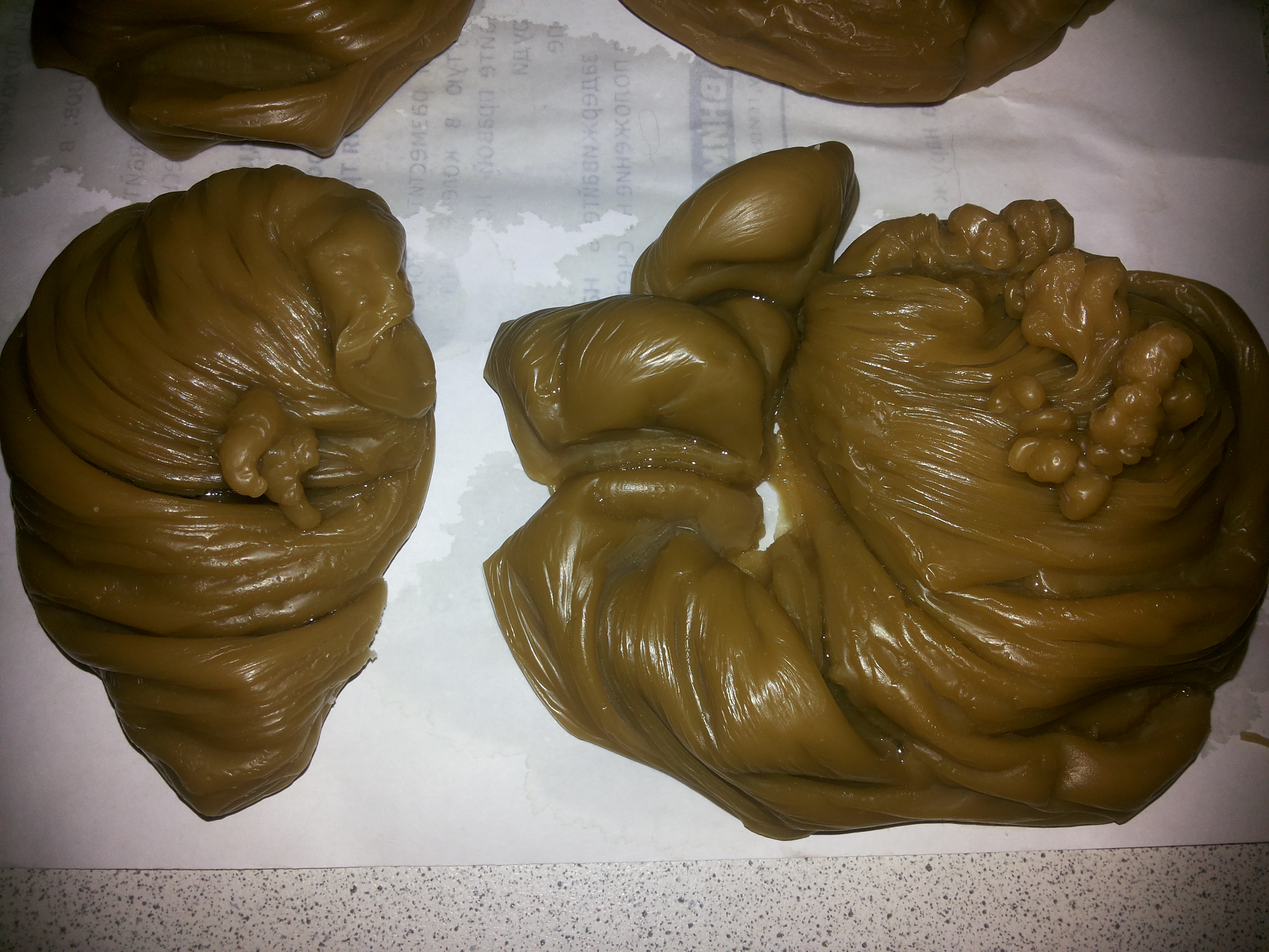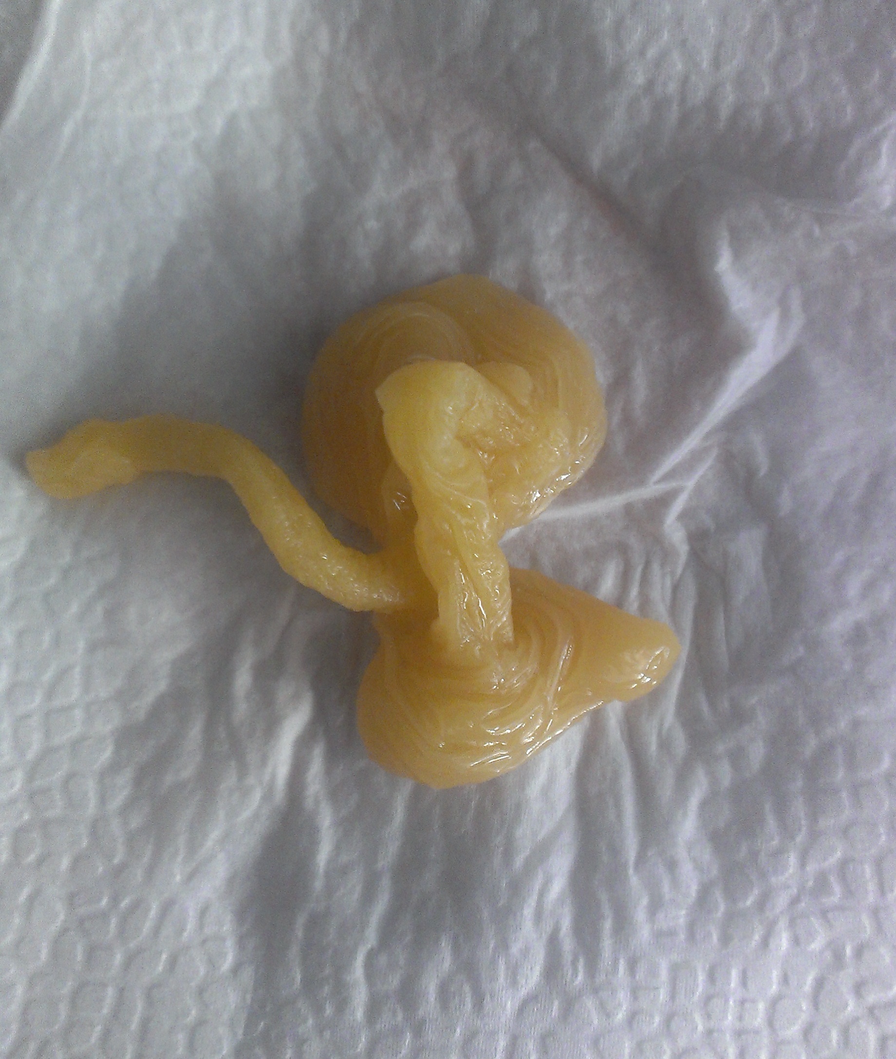 Порчи на разрыв отношений -отливка делится на две части. Часто отворот выливается в виде половых органов, при этом орган должен смотреть вниз. При привороте, орган, напротив, выливается вверх. Множество восковых мини- слепков мужского достоинства- это многократные магические воздействия. Очень часто на одной отливке виден и отворот, и приворот, наведенный неоднократно.